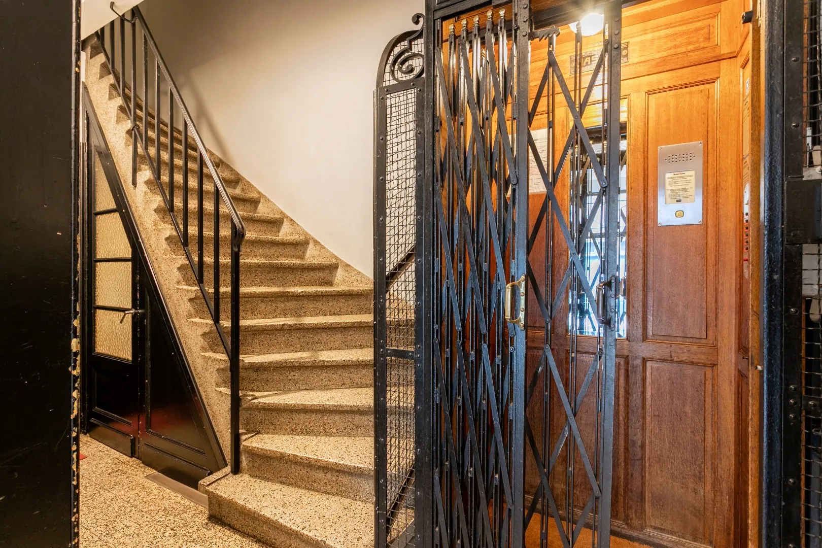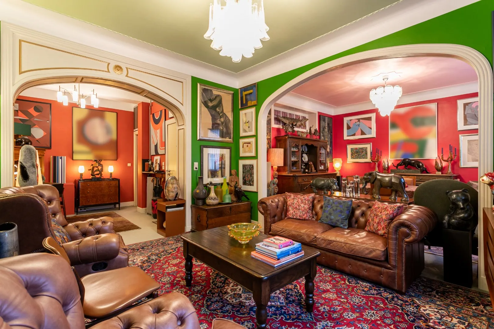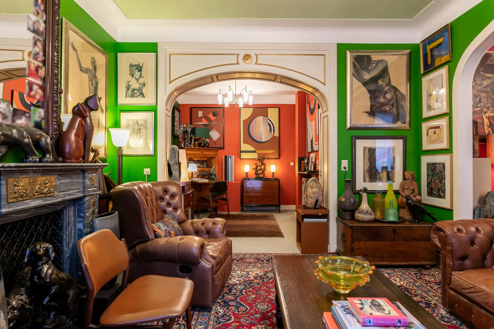 Het appartement met een gevelbreedte van 8m maakt deel uit van een herenhuis, wat zich vertaalt in een unieke sfeer: hoge plafonds, mooie volumes en originele architecturale elementen dragen bij aan het warme en elegante karakter van de woonst.