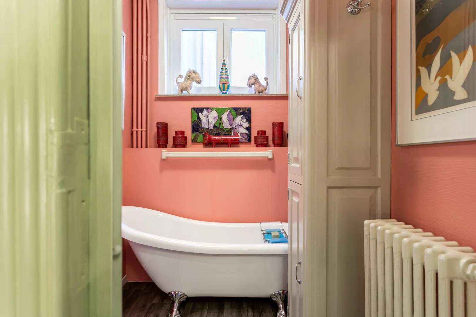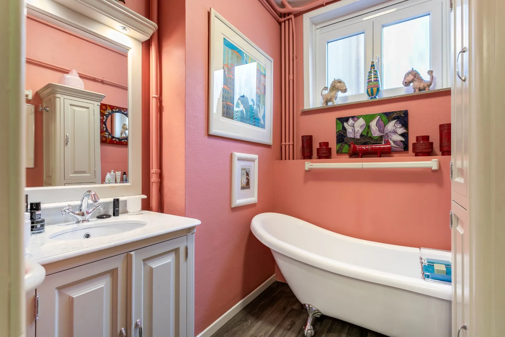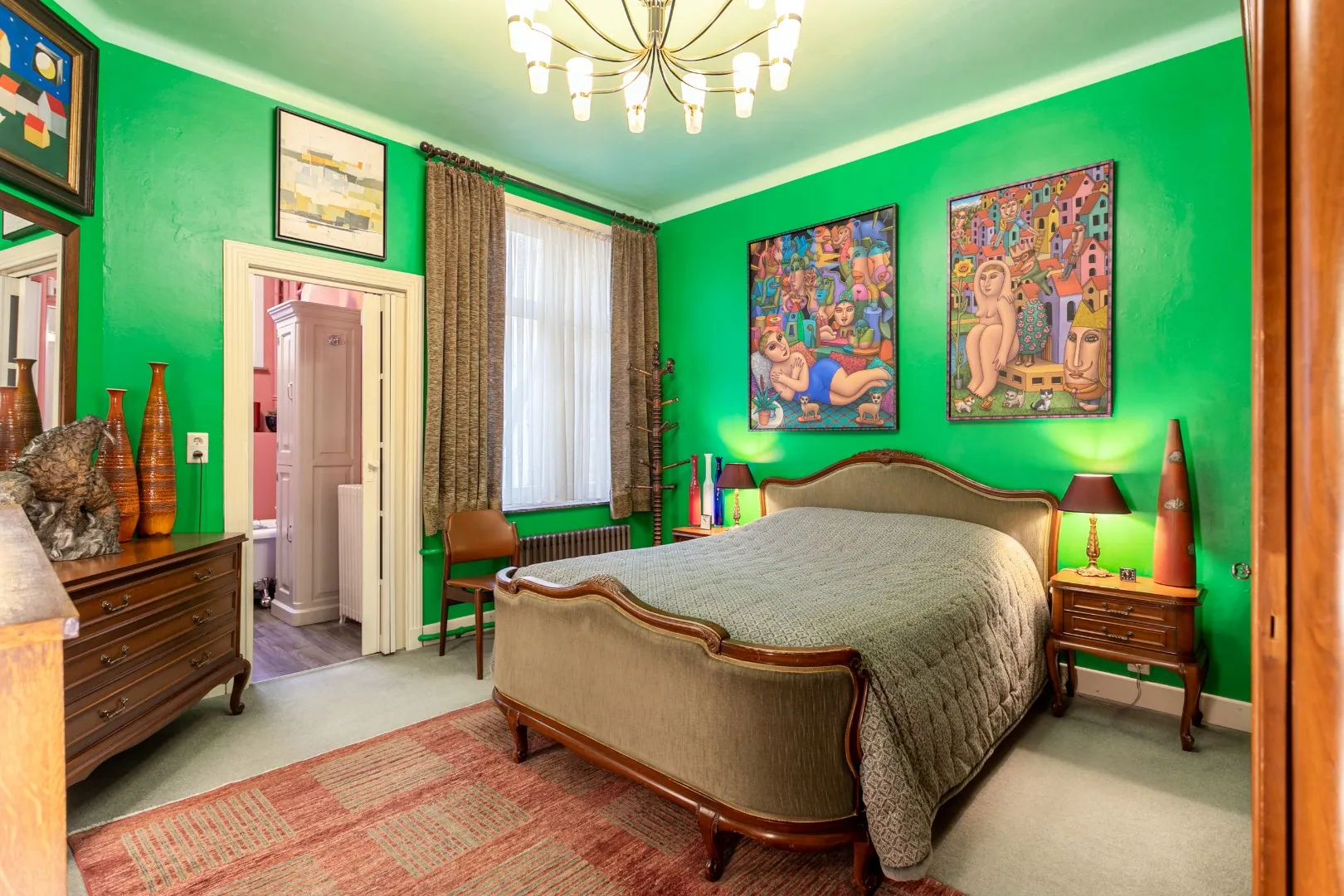 Het appartement met een gevelbreedte van 8m maakt deel uit van een herenhuis, wat zich vertaalt in een unieke sfeer: hoge plafonds, mooie volumes en originele architecturale elementen dragen bij aan het warme en elegante karakter van de woonst.
