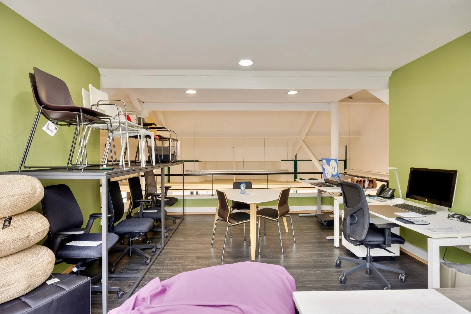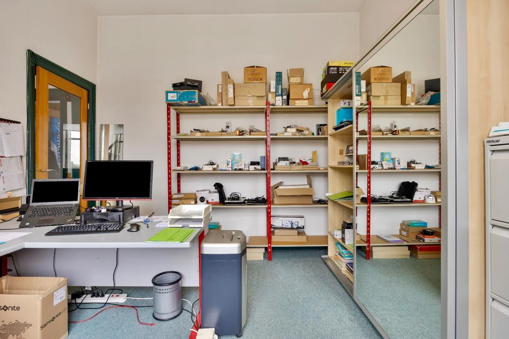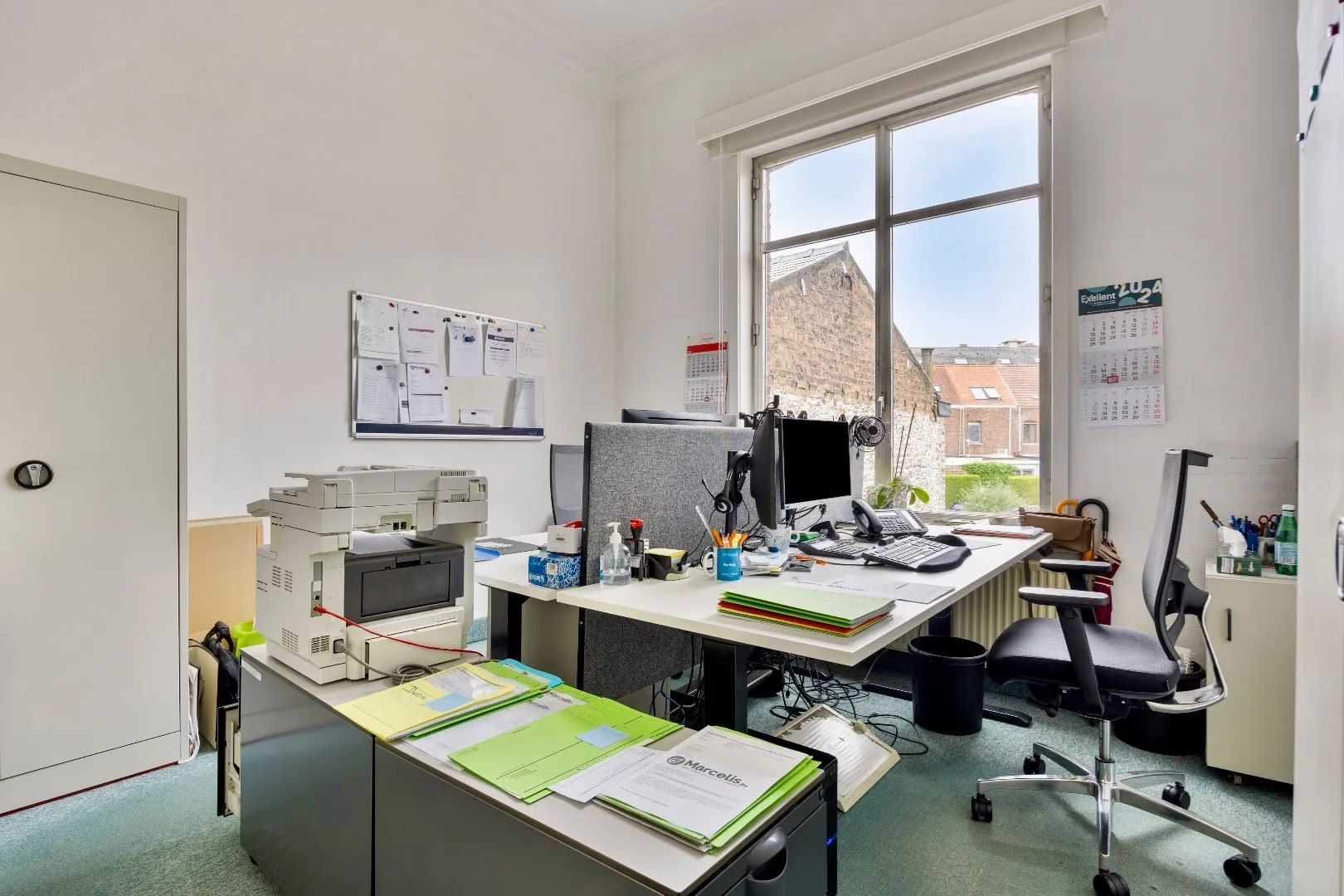 Via de trappenhal bereikt u de eerste verdieping uitgerust met open bureauruimte, een keuken en 2 afgesloten kantoorruimten. Op de 2de verdieping hebben we nog 2 aparte burelen en tot slot op de 3de verdieping/zolder is er nog mogelijkheid tot extra kantoorruimte of opslagruimte.
