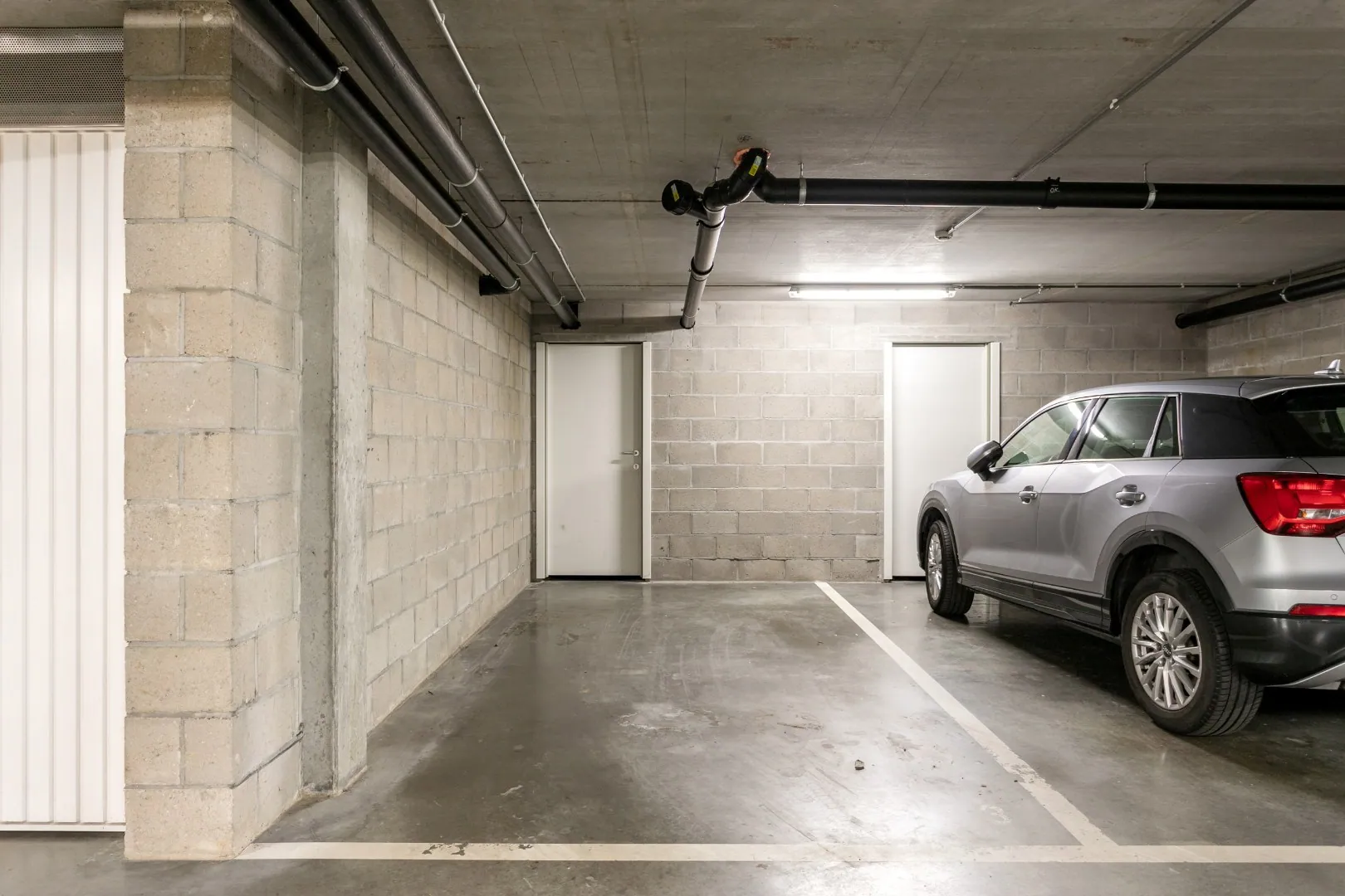 Het appartement wordt vervolledigd met een verplicht aan te kopen privatieve autostaanplaats en een kelder (25.000 euro) die voorziet in ruime opbergmogelijkheden. Via de gemeenschappelijke doorgang bereik je bovendien de fraai aangelegde tuin met aparte moestuin. Deze groene oase vormt een idyllische plek om te ontspannen, kinderen te laten spelen of zelf te genieten van een stukje eigen teelt.