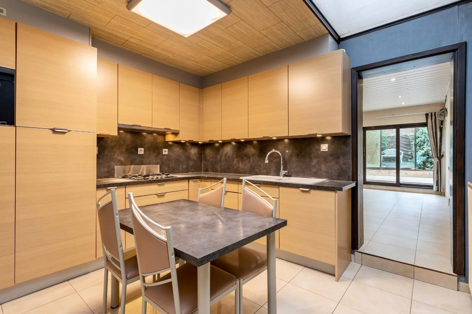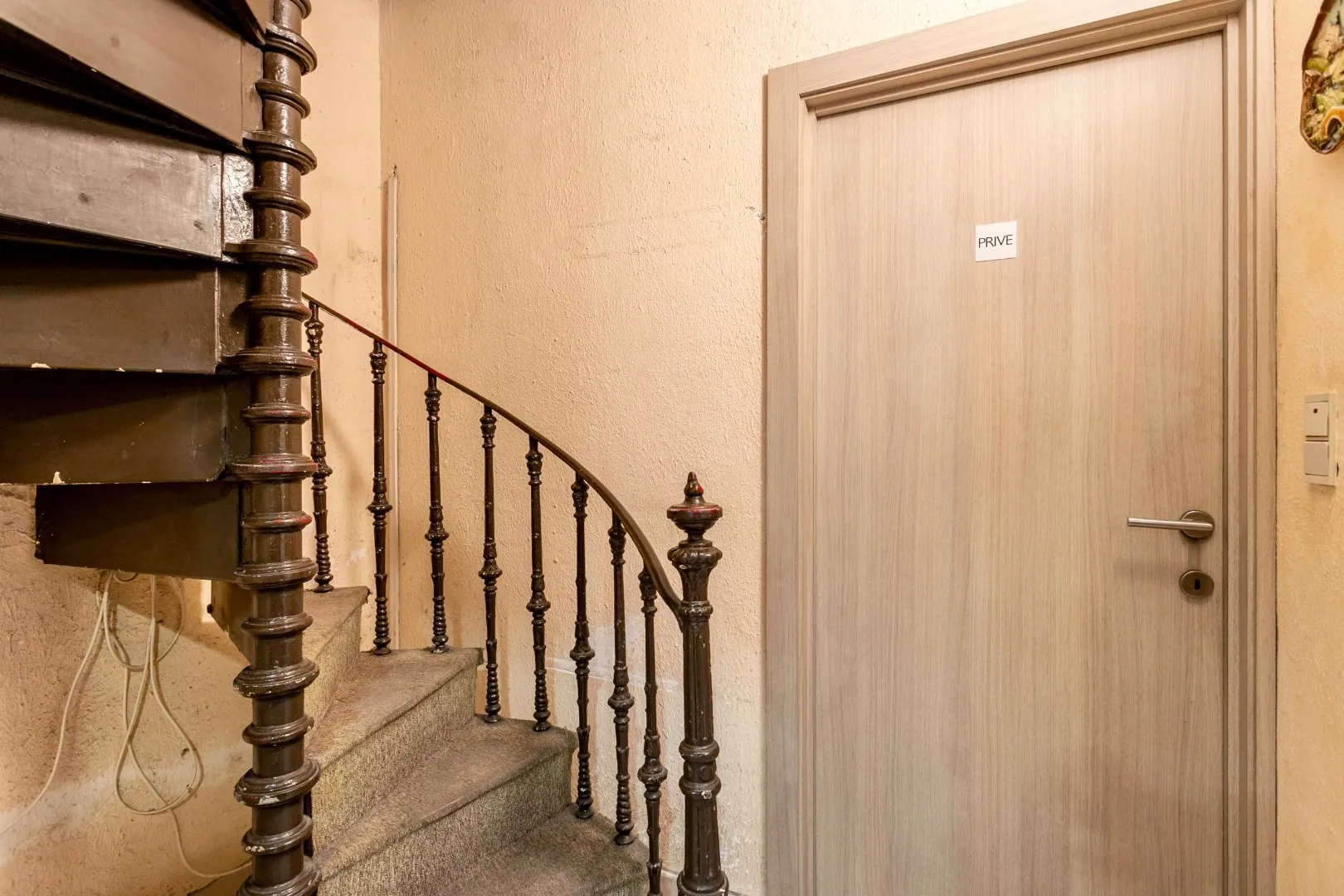 Het gelijkvloers niveau is ingedeeld als volgt: handelsruimte (heden ingericht als kapsalon), volledig uitgeruste keuken met ingebouwde keukentoestellen, ruime leefruimte met veel lichtinval en toegang tot de gezellige stadstuin met tuinberging.