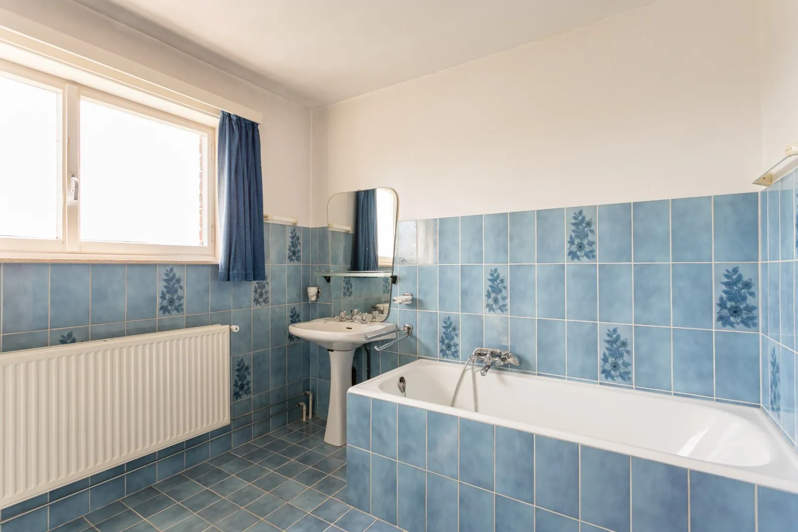 Op de verdieping zijn er vijf volwaardige slaapkamers, ideaal voor grote gezinnen of extra ruimte voor bureau of hobby. De badkamer met lavabo en ligbad vormt een goede basis om te moderniseren.
