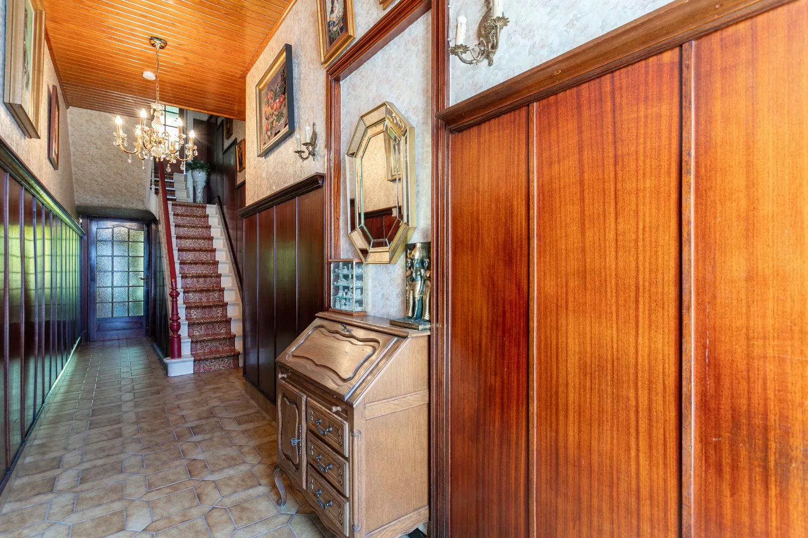 Bij het betreden van de woning komt u in een ruime inkomhal die toegang biedt tot de leefruimte, waar voldoende plaats is voor zowel een salon als een eetplaats. Aansluitend bevindt zich een tweede eetruimte en de keuken, die uitkijkt op en toegang geeft tot de tuin, een aangename plek om in alle rust te genieten. Op het gelijkvloers is eveneens een gastentoilet voorzien.