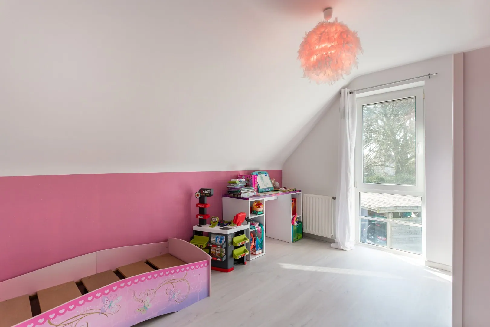 Op de bovenverdieping treffen we nog drie volwaardige slaapkamers en een tweede badkamer, wat zorgt voor voldoende comfort voor het hele gezin.