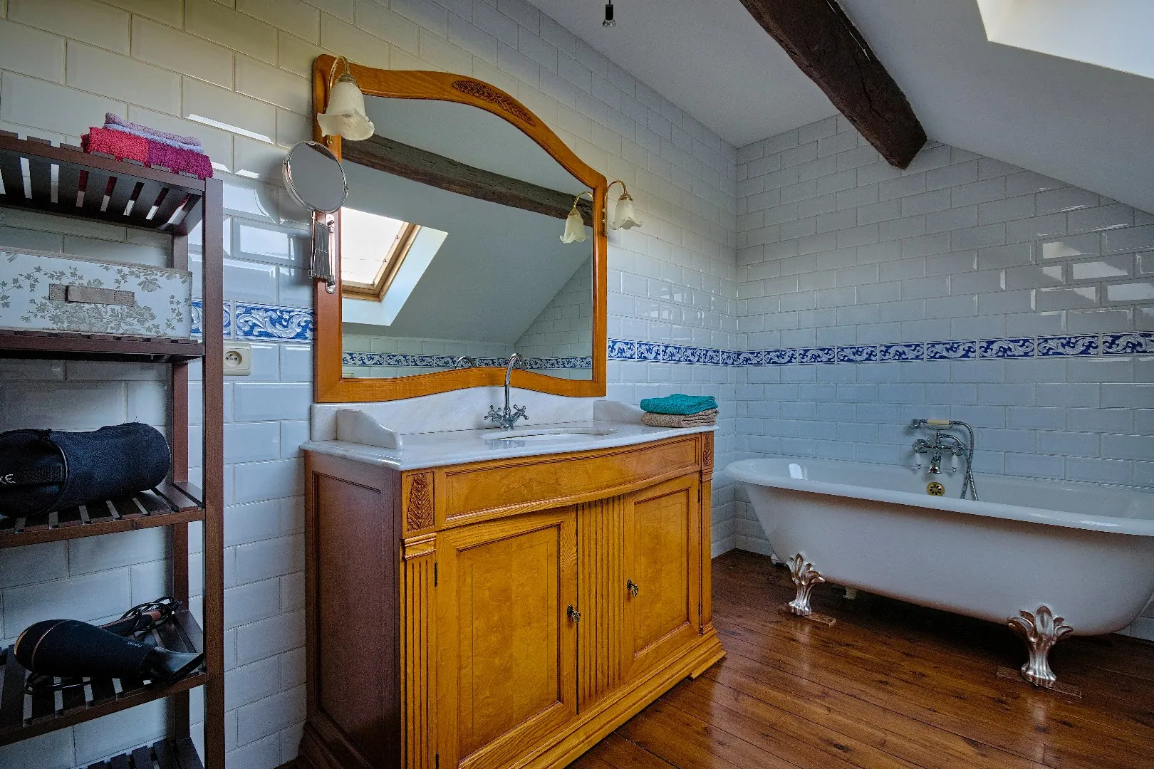 Op de bovenverdieping vinden we een ruime nachthal, die toegang biedt tot drie volwaardige slaapkamers en een tweede badkamer, ideaal voor gezinnen of wie nood heeft aan extra ruimte.