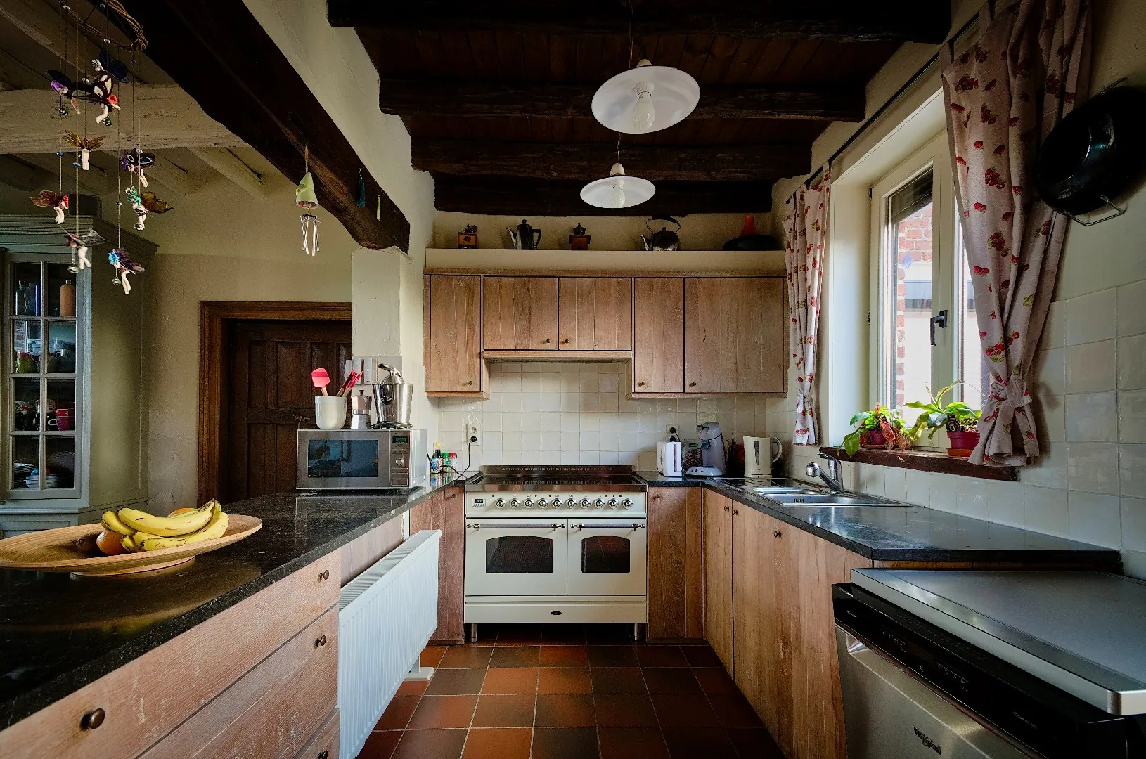Bij het betreden van de woning komen we binnen in een charmante hoeve met een goed uitgeruste open keuken die naadloos overgaat in de ruime en open leefruimte. Deze leefruimte geniet van veel lichtinval en biedt rechtstreekse toegang tot de tuin, wat zorgt voor een mooi contact tussen binnen en buiten. Op het gelijkvloers bevindt zich tevens een badkamer, wat het comfort van de woning verhoogt.
