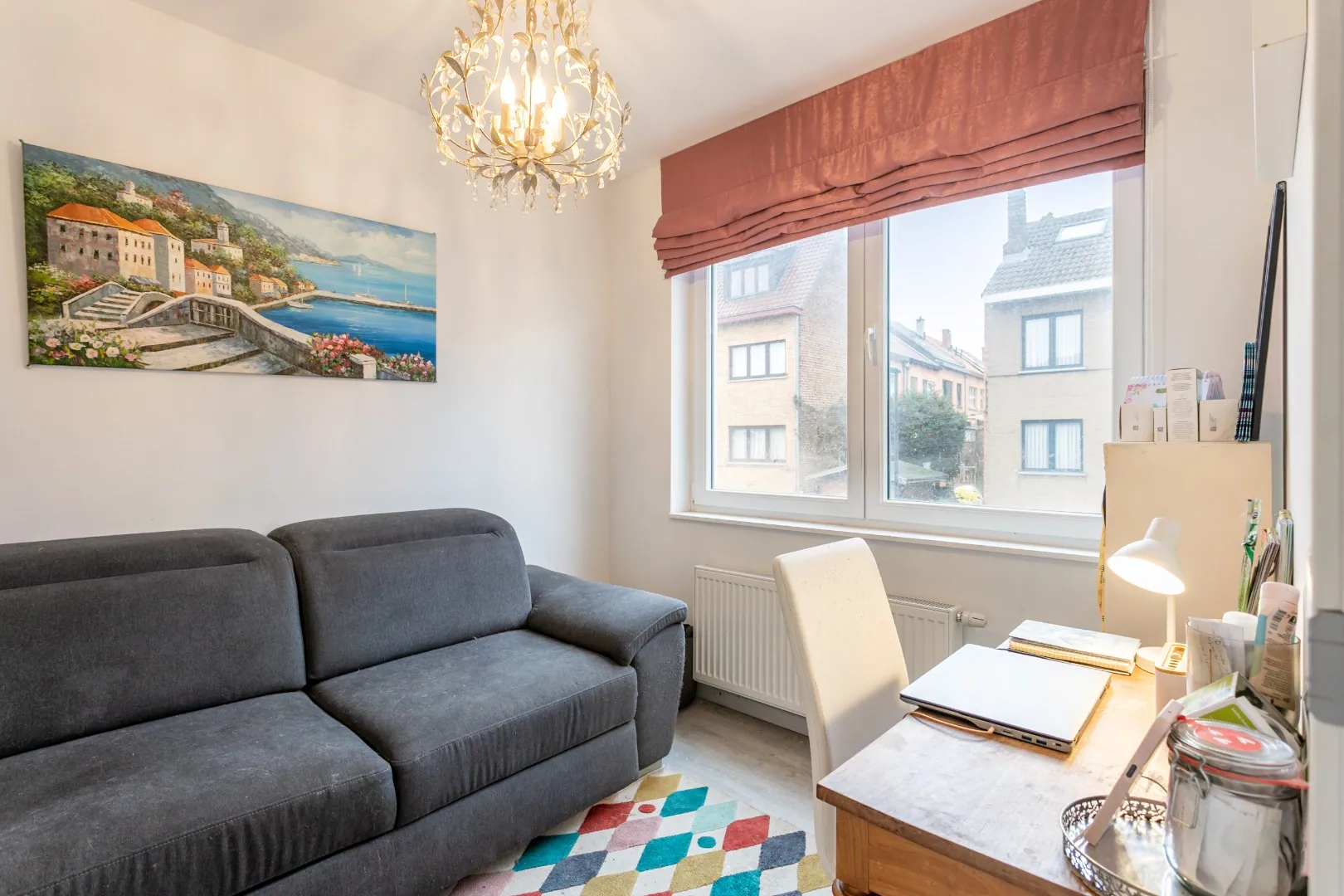 Op de eerste verdieping bevinden zich twee volwaardige slaapkamers en een badkamer, ideaal voor een gezin of wie graag voldoende ruimte voorziet voor bureau of logees.