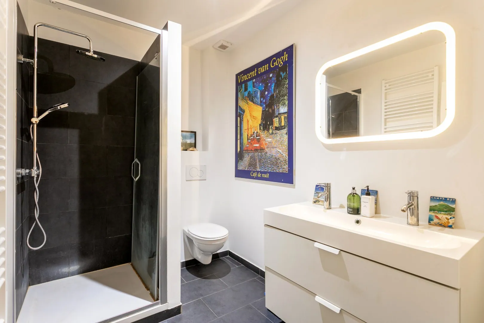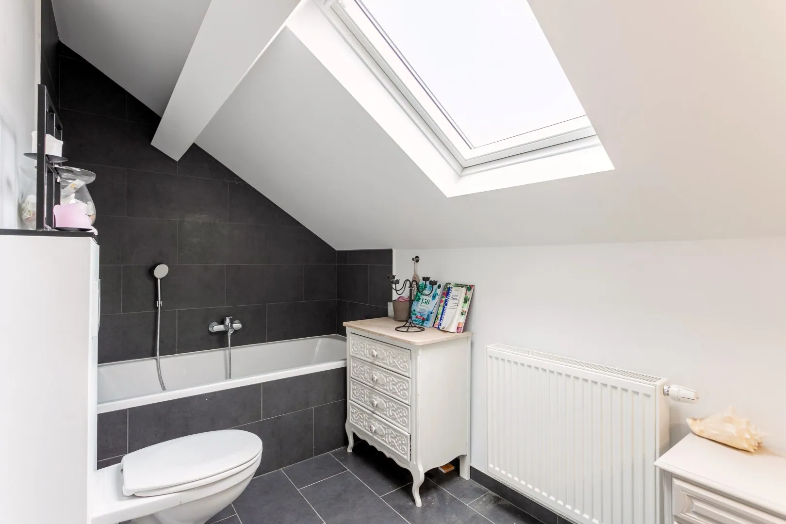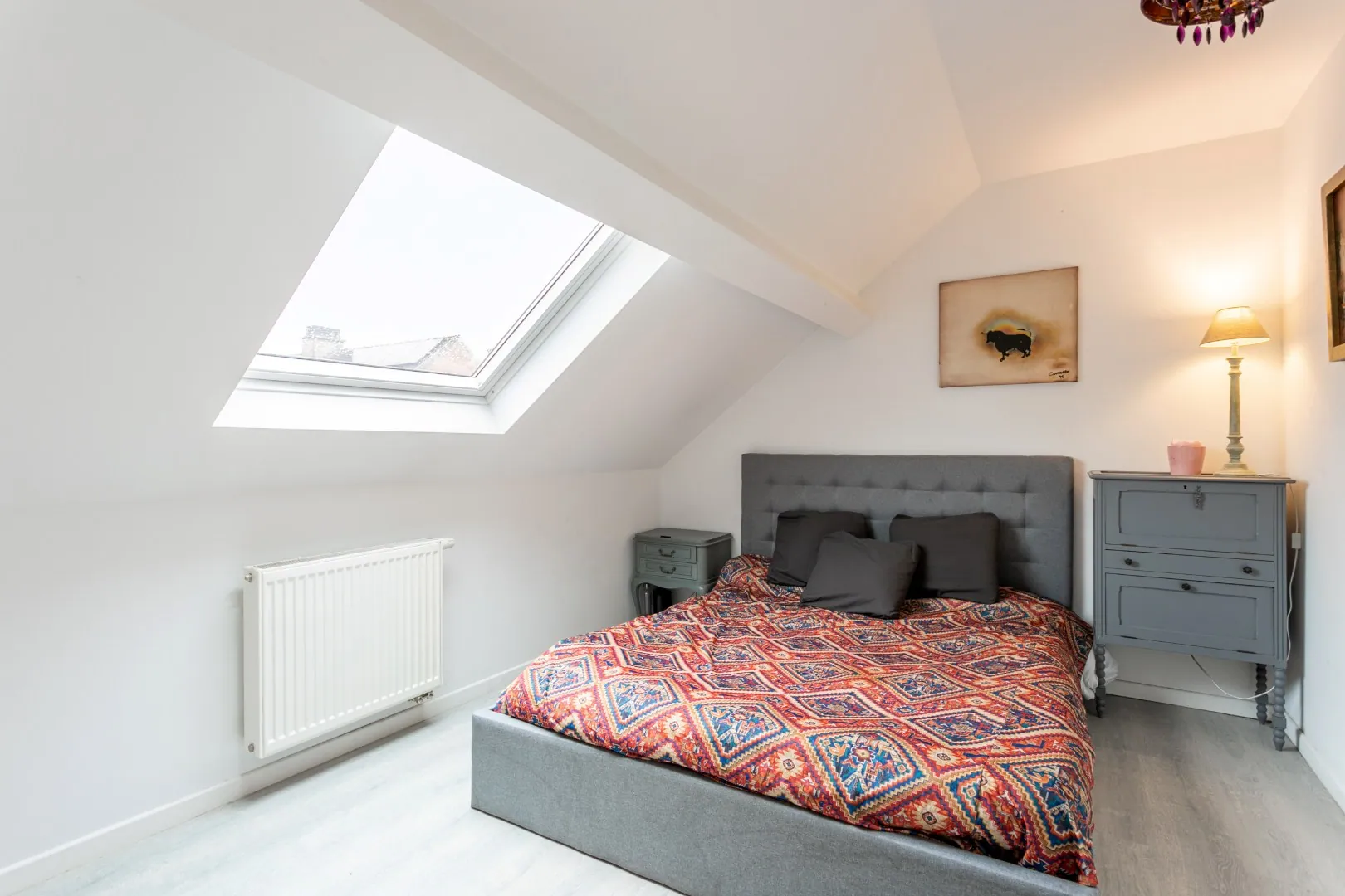 De tweede verdieping werd ingericht als derde slaapkamer met een eigen badkamer, wat deze ruimte bijzonder geschikt maakt als master bedroom of als volledig aparte privéverdieping.