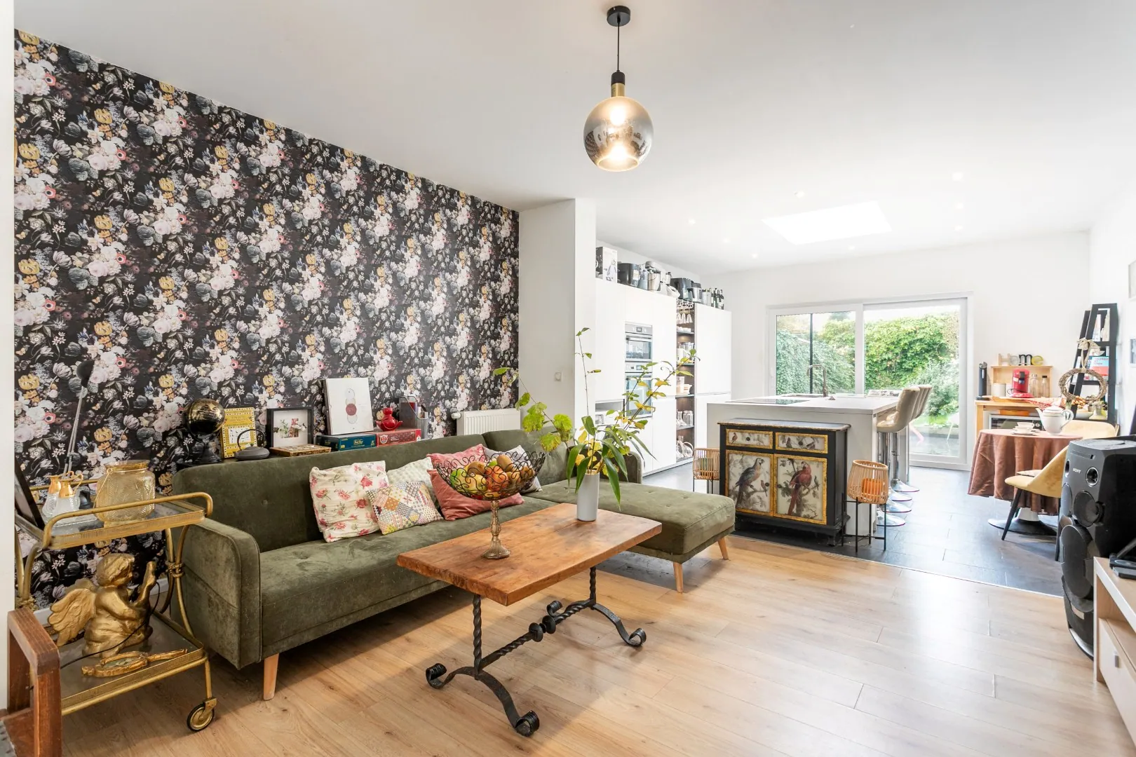 Deze energiezuinige woning met een woonoppervlakte van 115 m² (EPC B – 153 kWh/m²) biedt een moderne en comfortabele indeling die perfect is voor wie op zoek is naar een instapklare thuis. Je komt binnen in de gang met een apart gastentoilet en wandelt vervolgens door naar de ruime, open leefruimte die dankzij het grote schuifraam aan de keuken baadt in het natuurlijke licht en een vlotte connectie met de buitenruimte creëert. Vanuit de leefruimte heb je bovendien toegang tot de kelder, wat zorgt voor extra opbergmogelijkheden.